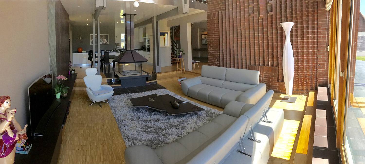 Cette maison d'architecte de 340m² habitable comprend un salon ouvert sur cuisine aménagée et équipée de type italienne PEDINI, une salle à manger très lumineuse donnant sur le jardin. La visite se poursuit vers un espace de bien-être avec une piscine intérieur de 4x10m, sauna, jacuzzi et d'une spacieuse salle de douche construit en 2014 aux normes RT 2012 et comprenant une installation HI-FI.