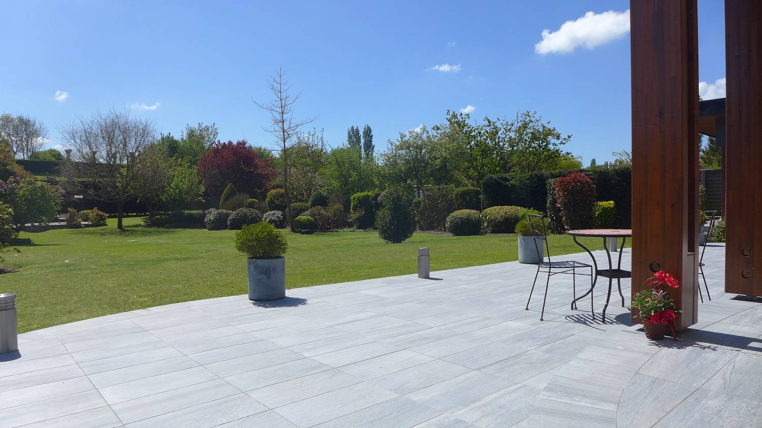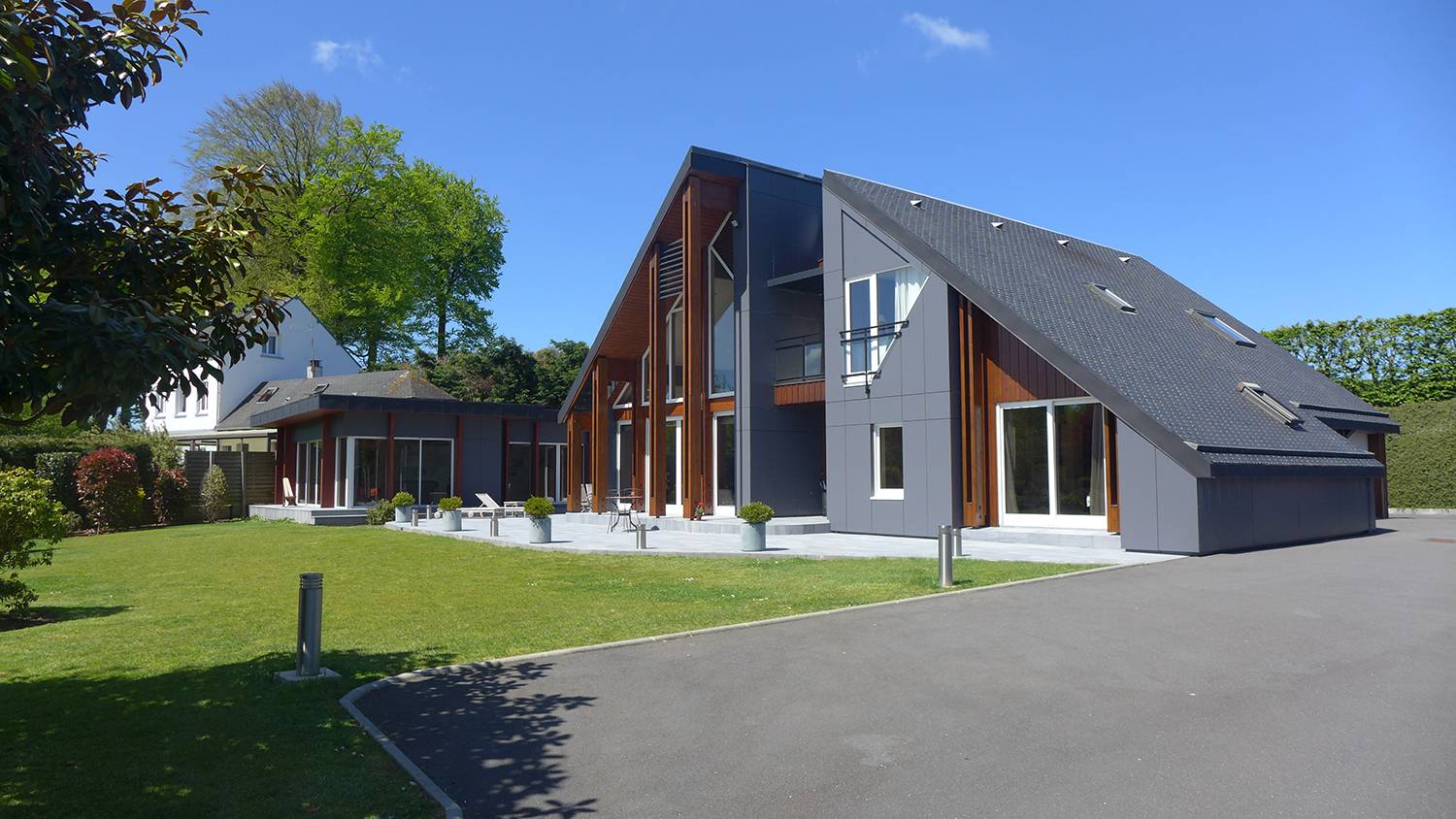 Cette villa construit avec des matériaux d'exception est exposé plein sud et dressé sur un somptueux jardin très arboré qui s'étend sur 2700m². Les espaces verts sont entretenus par une tondeuse automatique.