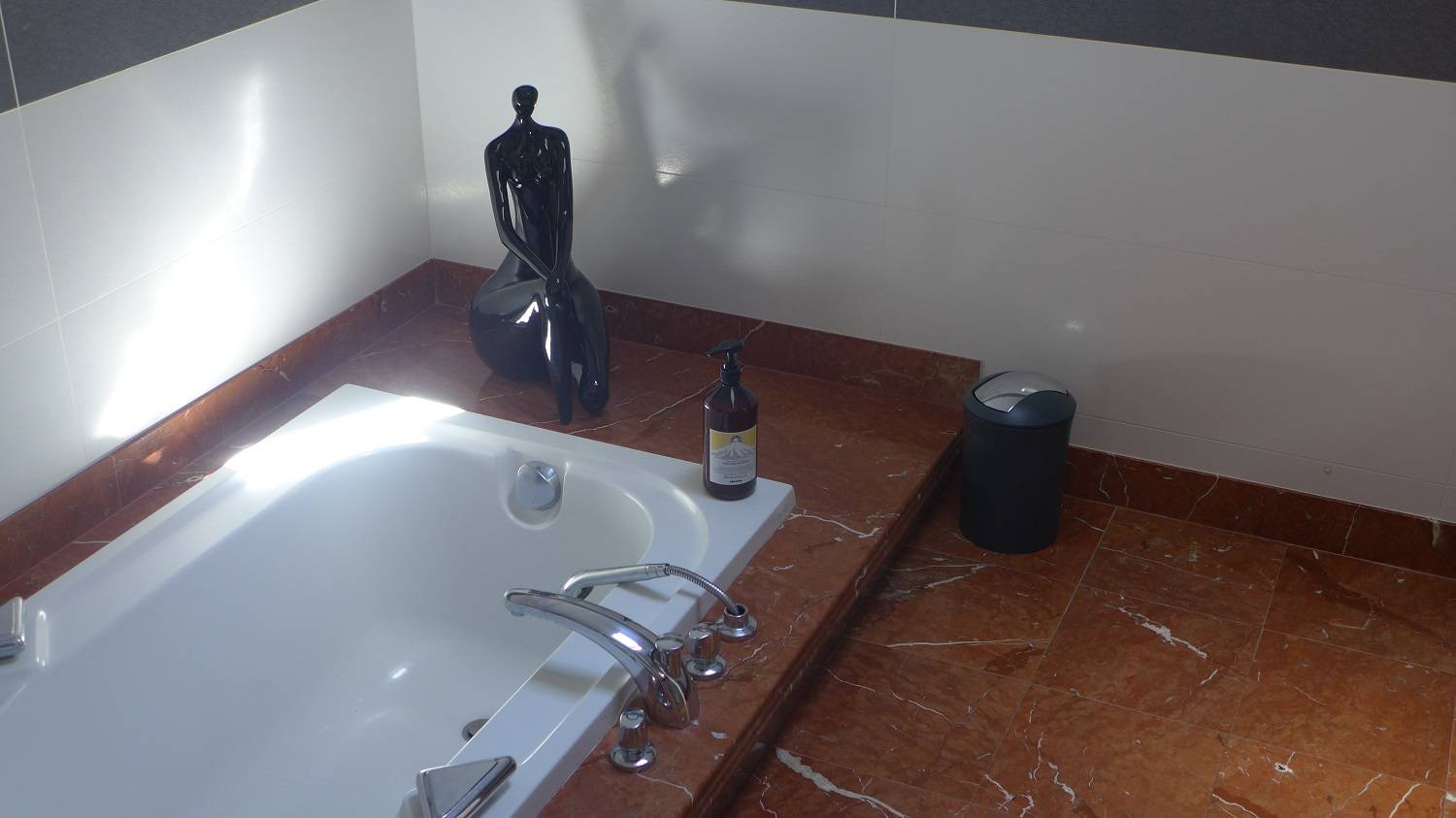 La suite parentale se situant au rez-de-chaussée comportant une magnifique salle de bain avec baignoire encastré au sol dans le marbre.