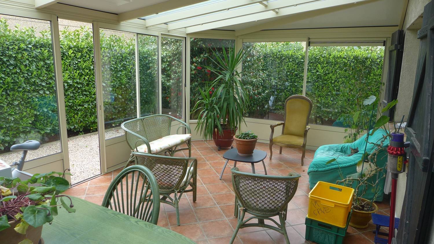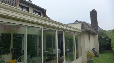 Maison traditionnelle de 148m² comprenant: entrée de 8m², séjour-salon de 41m² avec cheminée, véranda de 25m², cuisine de 10m², un bureau 9m² et une chambre de 11m², WC.