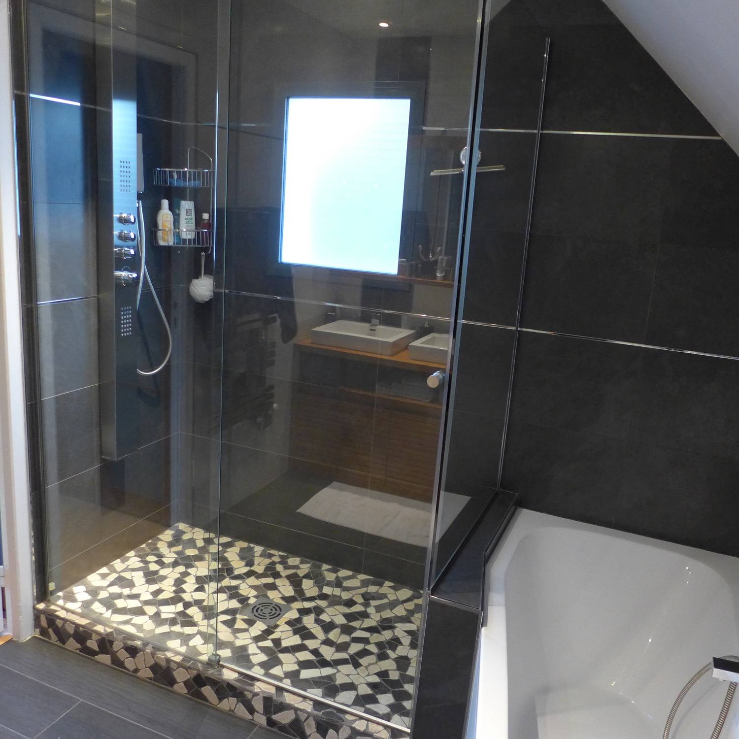 A l’etage : mezzanine, une chambre parentale plafond cathédrale avec salle de bain et dressing, deux chambres avec chacune un dressing et une salle de bain communicante.