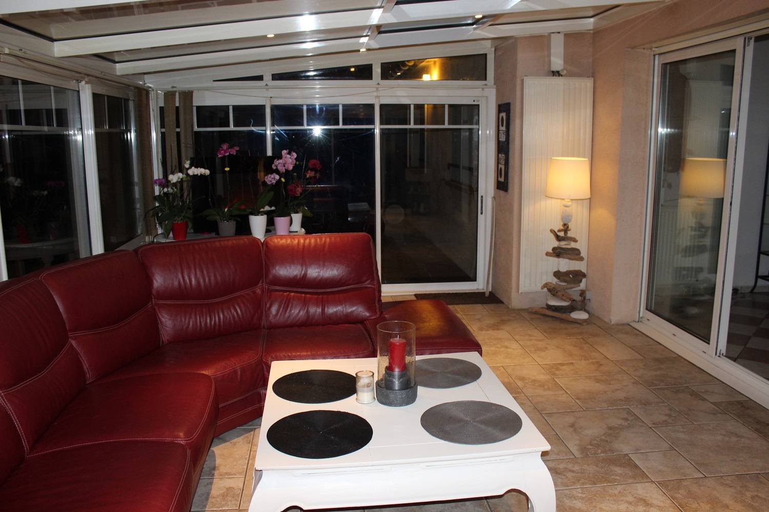 Une entrée avec penderie, une cuisine aménagée et équipée de 20 M² ouverte sur une salle à manger de 22 M² donnant accès sur une véranda de 27 M² équipée en salon et chauffée, trois chambres dont une avec placards, une salle de bains et douches et un WC.