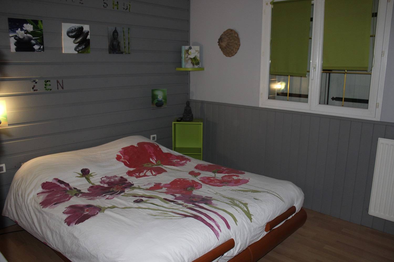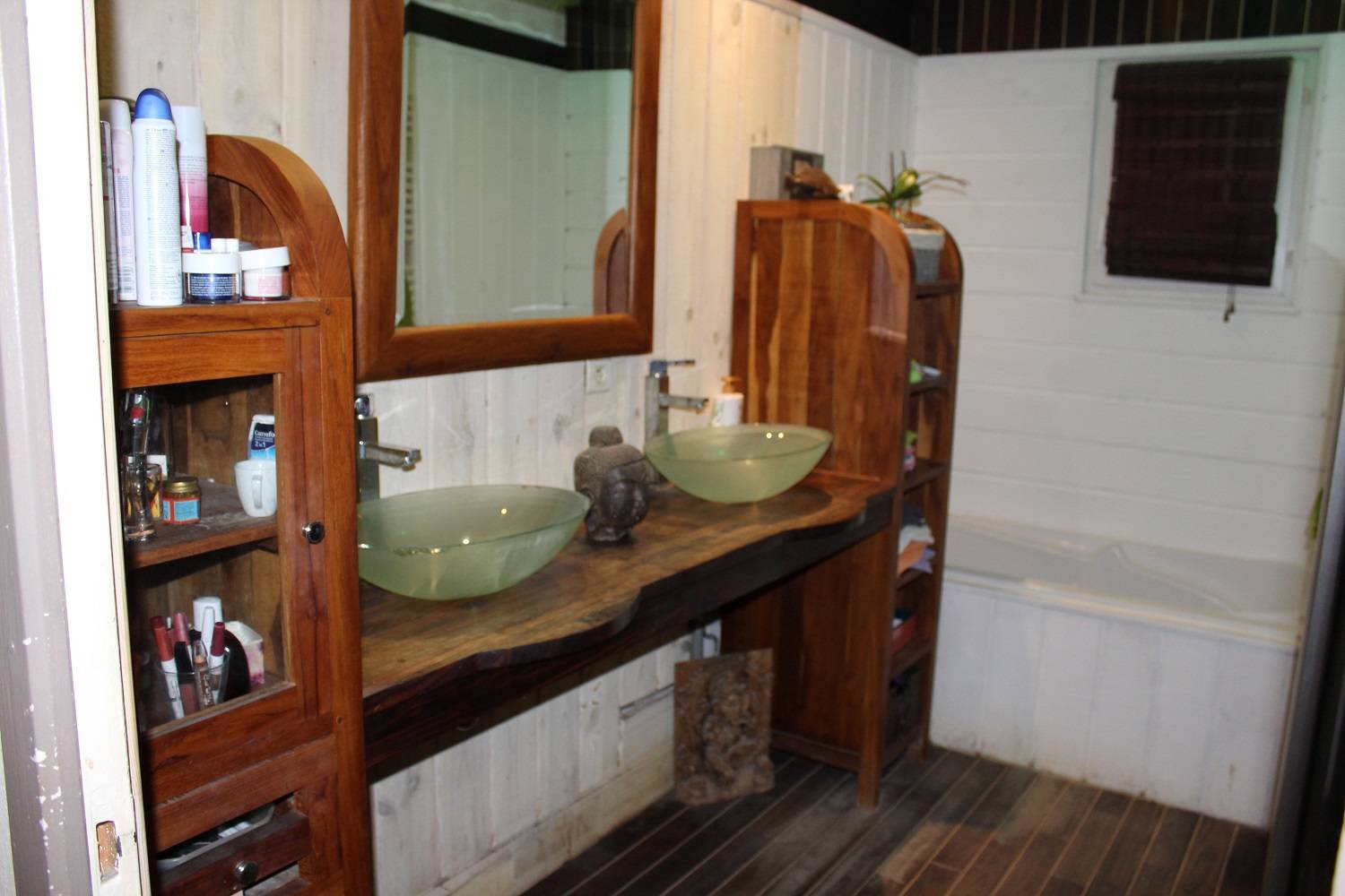 Un grenier au dessus du garage, une terrasse en bois.