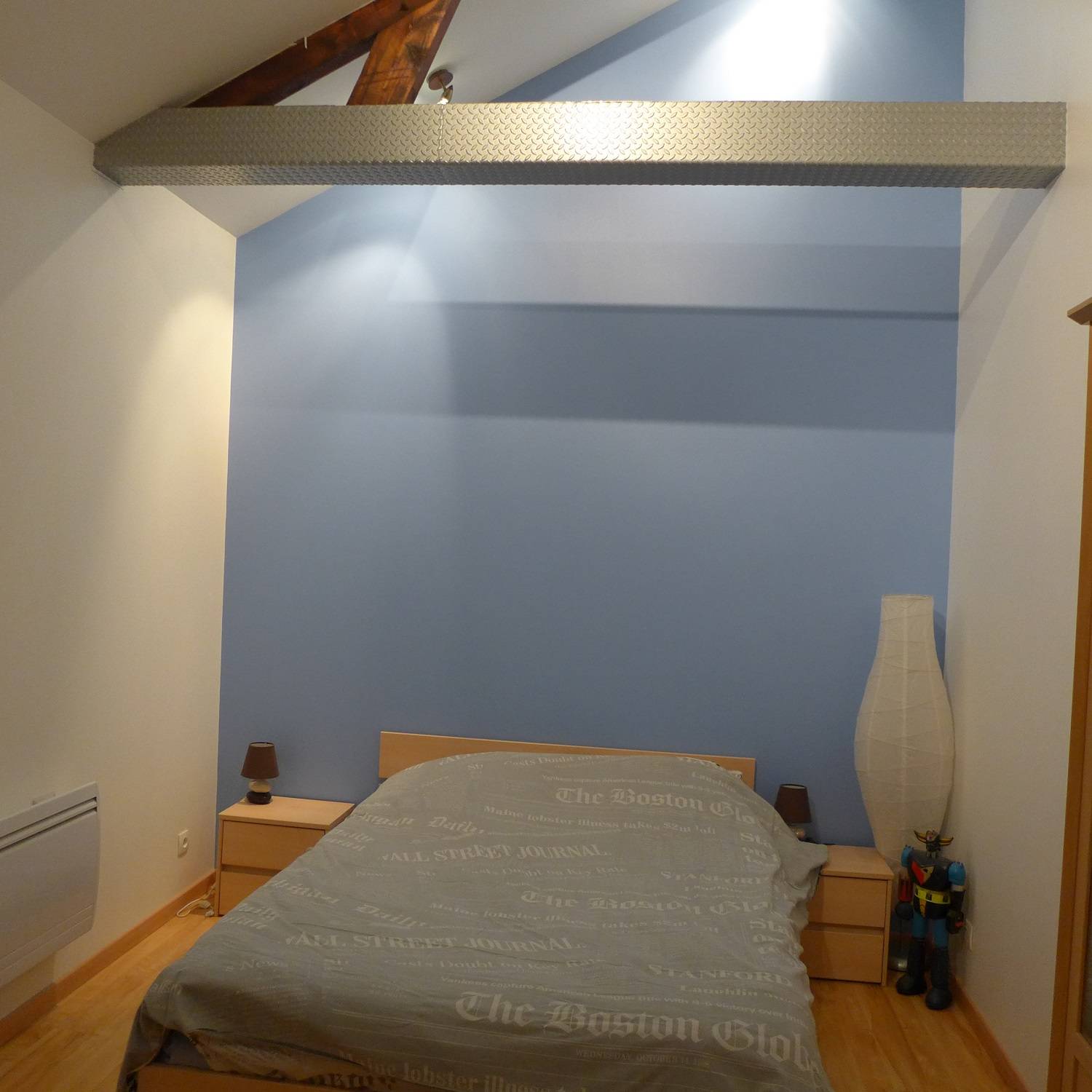 A l'étage, il y a 3 chambre et une salle de bain. La maison bénéficie d'un garage et d'une cour.
