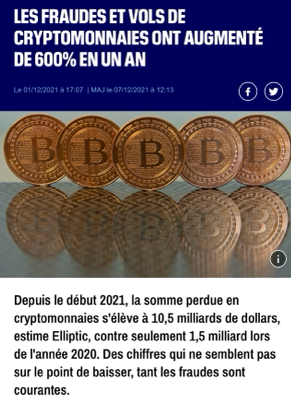 "Les fraudes et vol de cryptomonnaie ont augmenté de 600% en un an !" A retenir :