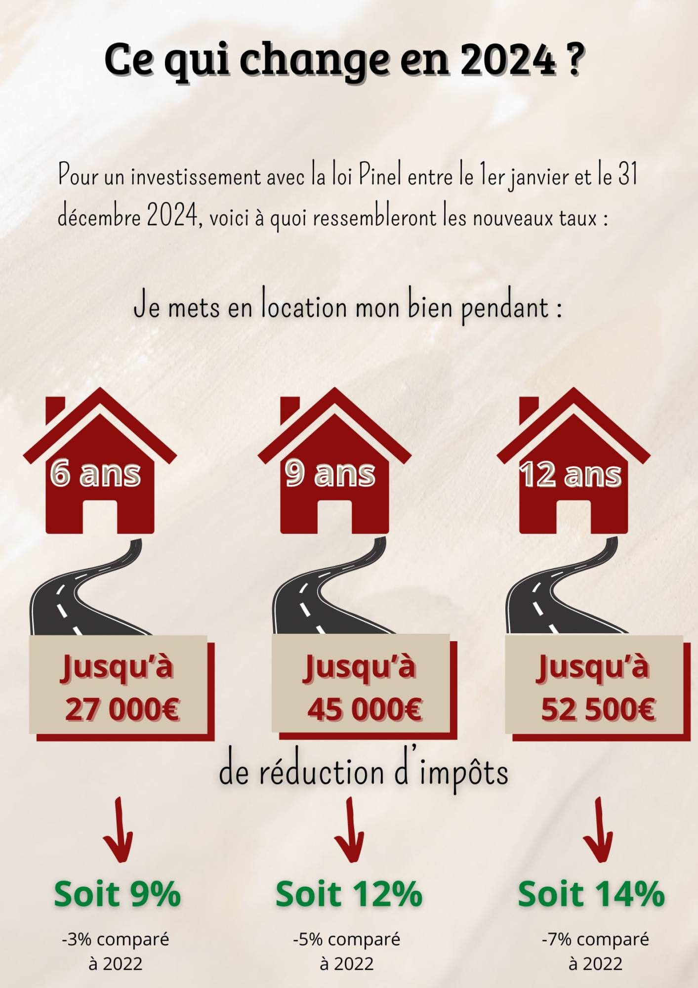 Comment est calculé le montant de la réduction d'impôt ? Le montant dépendra de la durée de location définie : 6, 9 ou 12 ans. En fonction de la durée, un taux sera alors appliqué pour l'année 2022, puis 2023 et enfin, 2024. A noter que l'engagement de départ de 6 ou 9 ans peut être renouvelable à terme pour une durée de 3 ans.