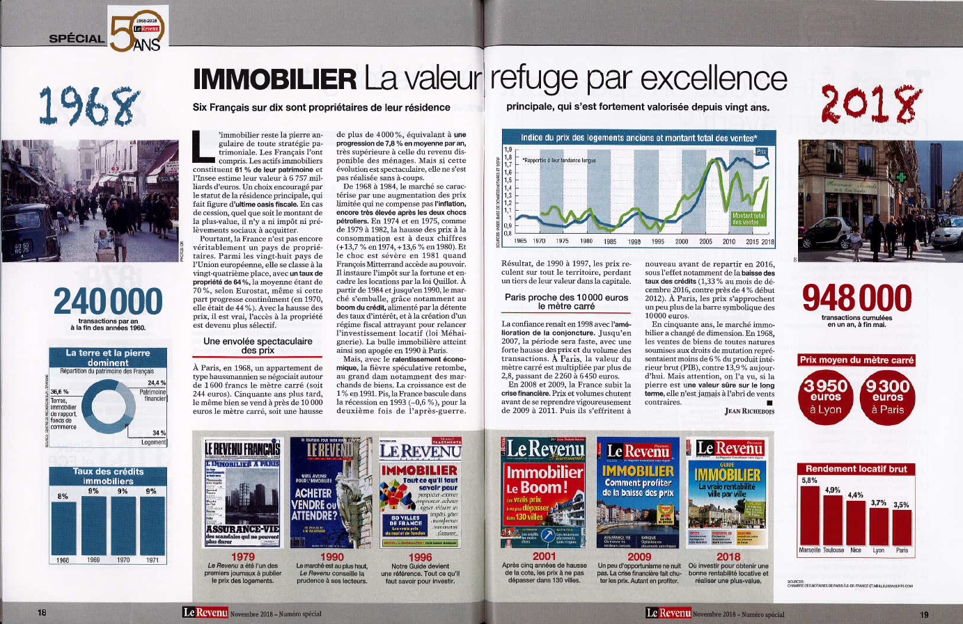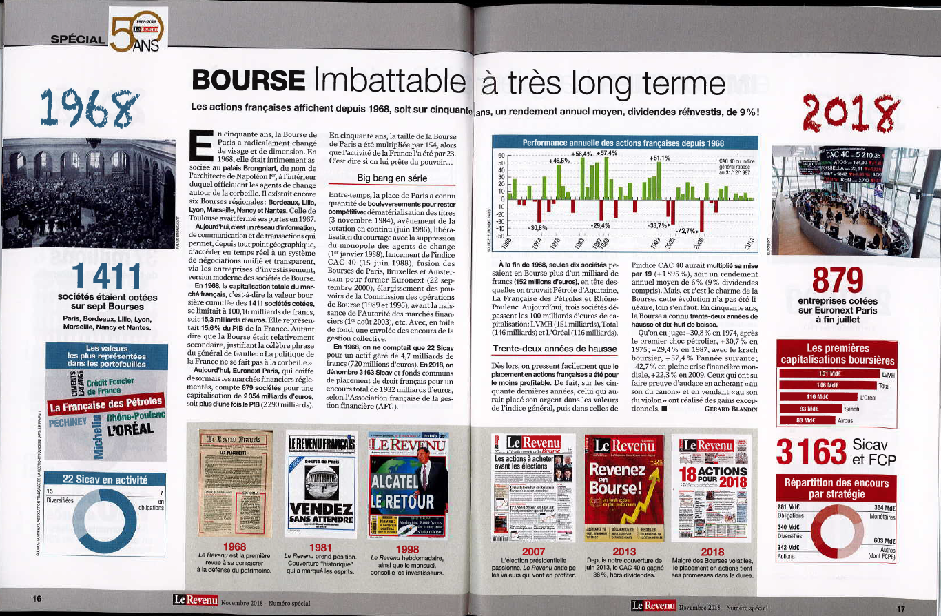 UPF, votre cabinet en gestion de patrimoine sur LE HAVRE, vous propose de lire des articles du Revenus sur l'évolution du marché (placements, épargne, euro/franc, assurance-vie, bourse ou encore l'immobilier) paru en novembre 2018 spéciale 50 ans.
